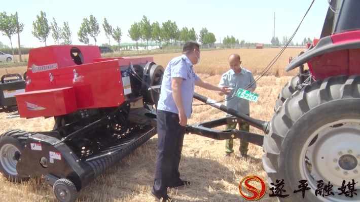 打捆机操作员安龙:这是今年才买的机器,小麦收割后帮他们打捆运走,农户既增加了收入,种地也方便了。