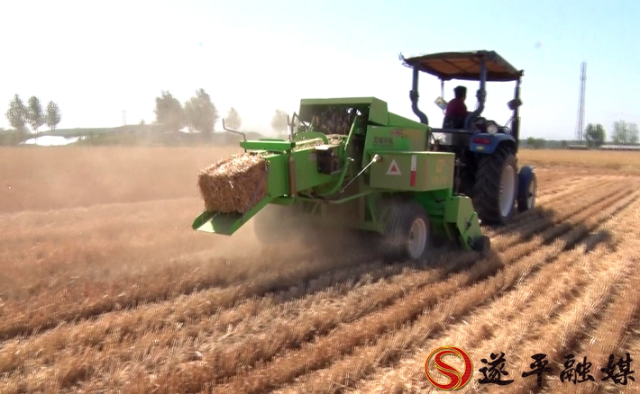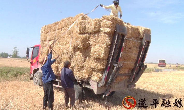 近日,在遂平县花庄镇高魏楼村,只见麦田内机声隆隆,一台打捆机正在地里作业。伴随着机器的轰鸣,麦收后留下的秸秆被打捆机陆续收集起来,随后又变成一捆捆的麦秸从机器尾部“吐了”出来,整齐地布满了地头,像一个个整装待发的士兵。工人们正有序的把一捆捆秸秆装上车,等待拉走,现场一派繁忙的景象。
