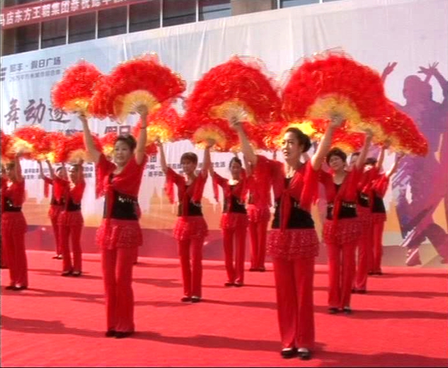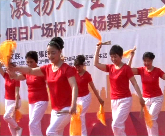 选手候圆圆同期声:现在生活越来越好了,大家吃完饭没事的时候都喜欢来跳跳舞,锻炼锻炼身体,然后我们是代表东方王朝集团来参加这次活动,希望能和大家互相切磋一下,结果不重要,重要的是重在参与,也希望给大家共同学习、共同进步,也希望大家的日子越来越好。