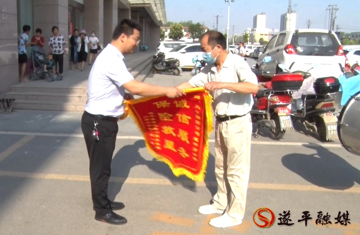 本网讯(记者:周俊生)6月8号,家住灈阳街道办事处的刘先生将一面写有“诚信服务,保险救星”的锦旗送到太平人寿遂平营销服务部,以表达对该公司热情高效理赔服务的谢意。