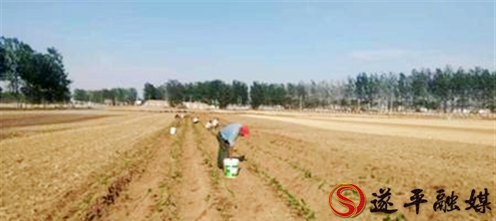 本网讯(通讯员:薛媛) 6月7日,遂平县文城乡前湖村的土地上,村支书王新慧正带着村里签订种植合同的贫困户们忙着卸车,定植红薯秧苗。现场一片热火朝天的劳动景象。