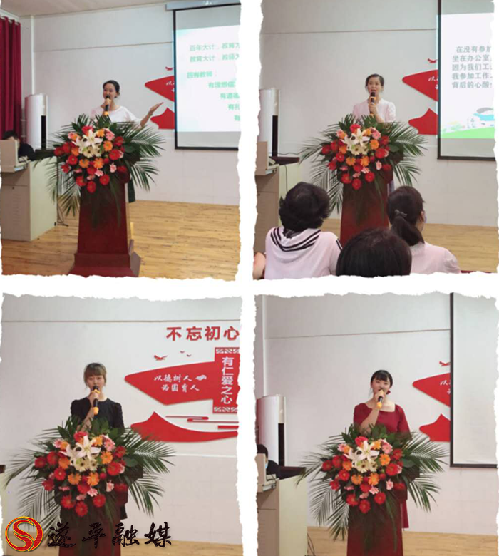 比赛过程中,教师们或讲述发生在自己身边的点点滴滴,或列举在工作中无私奉献的典型事例,流露了对幼教事业执著追求的真情,也从中体现了老师们为人师、为人女等多重角色的艰辛,一个个鲜活的故事,一份份真挚的情感,令现场气氛热烈,感人至深。钱江南老师声情并茂的演讲《爱在初心中成长,花在使命中绽放》,讴歌了幼儿教师无私奉献、爱岗敬业的高尚情操以及作为教师所担负的教育责任;姚静老师激昂的演讲《不忘初心,做最美幼教人》,字字真情、句句感人,诠释了自己幼教路上的心声;付萌老师动情的演讲《向着梦想远行》,声情并茂地讲述了自己对师德的感悟,用自己的实际行动诠释着师德师风的真谛,用事实告诉所有教师要拥有阳光般的心态,才能在繁琐而忙碌的工作中造就幸福人生;王婷婷老师的演讲《“三平”精神促成长》,向大家坦露了自己作为一名教师的成长历程,工作中的困惑、疑问、坚持和努力......