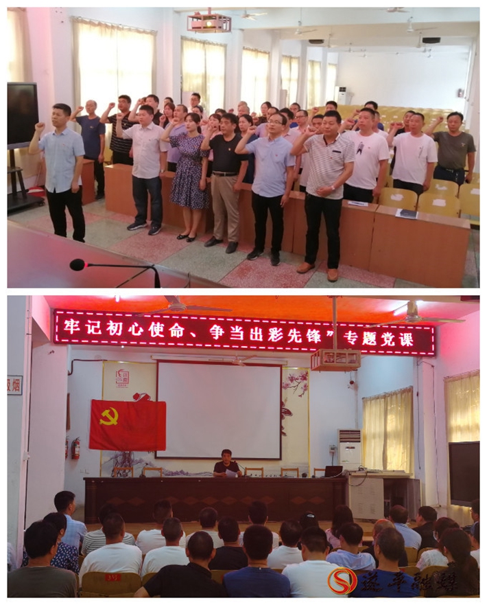 本网讯 为庆祝中国共产党成立99周年,全面贯彻学习习近平新时代中国特色社会主义思想,进一步增强学校党总支的凝聚力和战斗力,激励全体党员坚定理想信念,清廉为师,廉洁从教,6月24日下午,遂平县职业教育中心党总支开展“牢记初心使命、争当出彩先锋”主题党日活动。