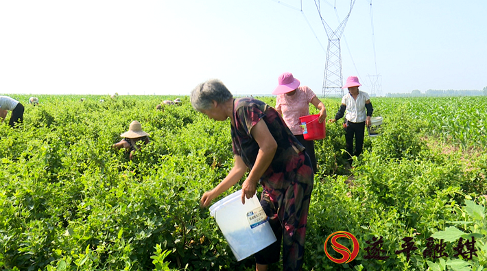 常庄镇常庄村村民李兰:我是这附近的贫困户,在这蔡岗这摘金银花里,一天管挣五六十块钱。