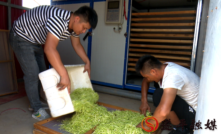 遂平县常庄镇蔡岗村村民刘现伟:咱们的金银花现在主要销售到北京的国药研究院,然后还有一个湖北的午时药业,然后还有一些其它的药厂,你像甘肃的王老吉厂,这都是我们对接的,签订的有回收合同,订单。现在是一部分给药厂,一部分然后是我们烘干,作为茶叶来销售。