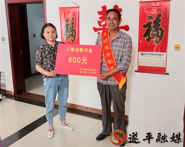 本网讯(通讯员 沈红伟)日前,阳丰镇副镇长石瑞和退役军人服务站站长陈遥一行为立三等功的现役军人黄志凯、孔龑龑两个家庭送去立功喜报和一次性奖励金。