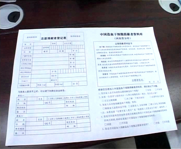 血样采集现场,捐献者首先要填写志愿者捐献书和登记表。经工作人员审核合格后,,由医护人员在指定区域内完成对捐献者的血样采集。每次血液采集为6毫升,采集结束后,红十字会会及时将捐献者的资料与血液一起送入中华骨髓库当匹配资料。