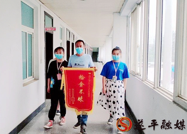 本网讯 7月24日上午,市民钟先生带着两个女儿专程来到遂平县交警大队女子中队,将一面印着“拾金不昧”的锦旗送到女子中队女辅警李晨手上,对李晨拾金不昧的行为表示衷心感谢。