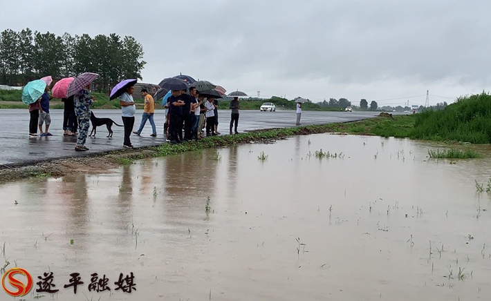 7月22日,雨势极大,石寨铺居委会党员防汛突击队在巡逻中发现,重阳大道附近农田发生大面积内涝,昔日平地变汪洋、通村道路被淹没。如不及时疏通,不仅危及马楼、东街等6个村民组近千亩农田作物,更影响村组群众返家安全。