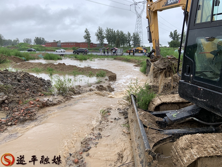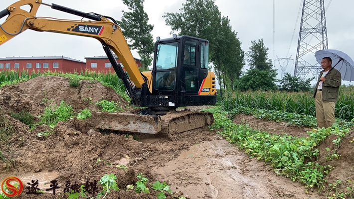 灾情就是命令,形势严峻,刻不容缓。镇党委接到情况汇报后,立即联系重阳大道项目工程施工方中冶集团负责人现场查勘,根据情况制定排涝方案并调配大型机械迅速开展排涝作业。