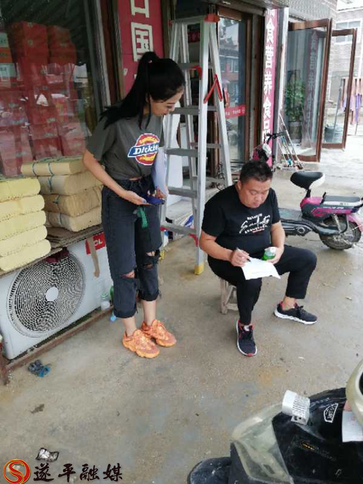 石寨铺镇志愿者对沿街商户进行爱国卫生问卷调查