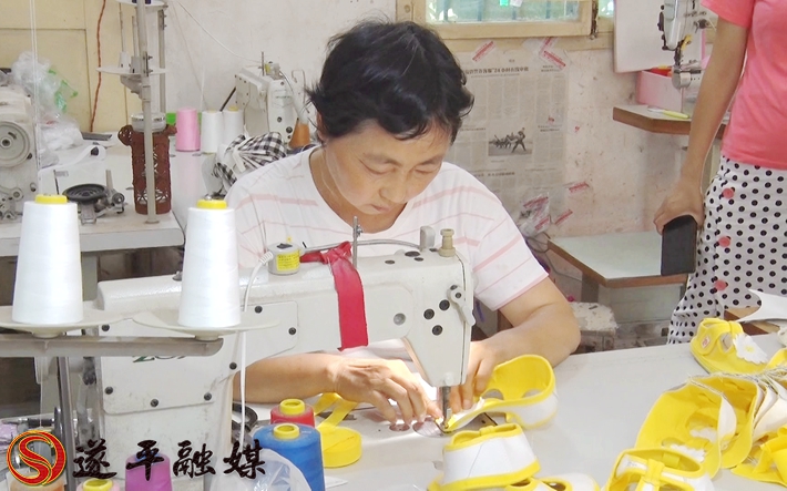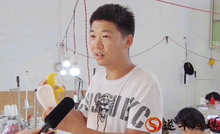 当地群众刘大勤:我是着附近里,在这上班,已经好几年了,在这也很开心,每天像这样的鞋帮也能做30来双,一双3块多钱,一天也划百十块来。在这离家近,还能顾着家,也挺好哩。
