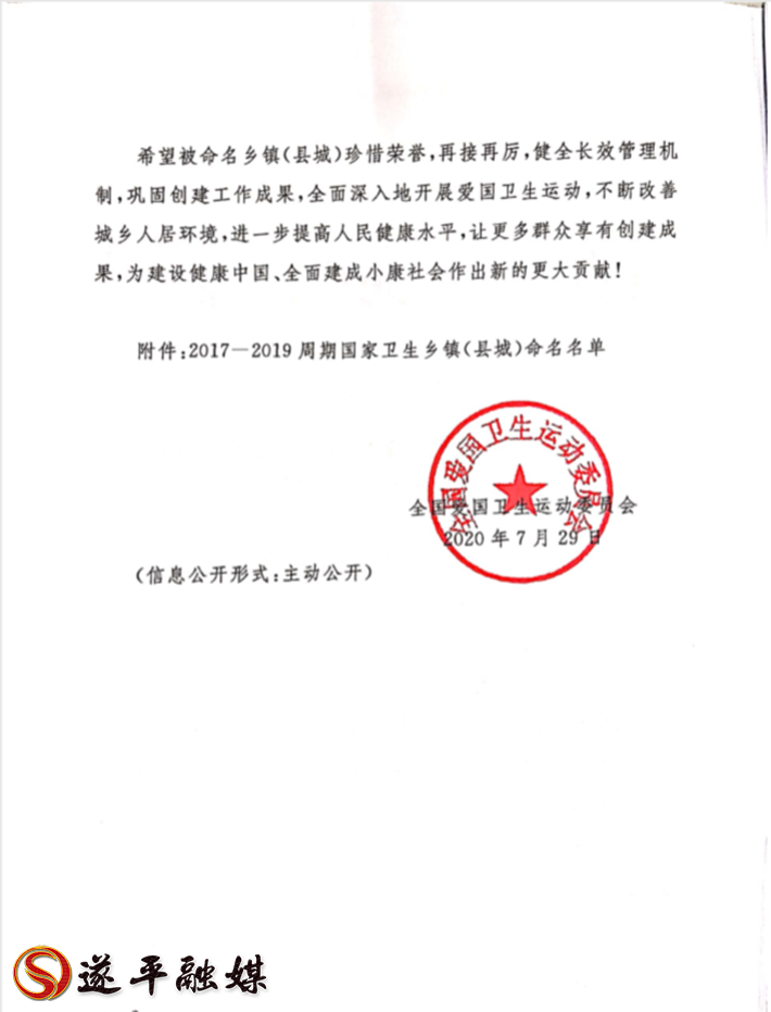 特大喜讯!遂平县上榜2017——2019周期国家卫生县城