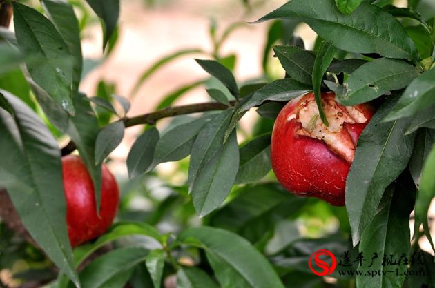 近日,记者在位于遂景大道北侧(高铁西一公里)的遂平县丰园红生态水果采摘园采摘时发现,这里的已经成熟的中油14油桃有好多被小鸟啄的疤疤瘌瘌 ,让采摘的人们很是郁闷,这是怎么回事呢?