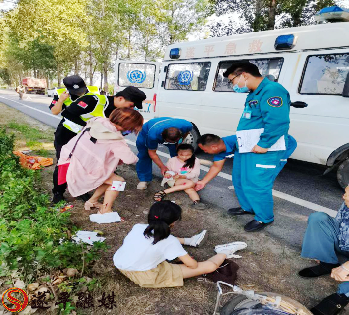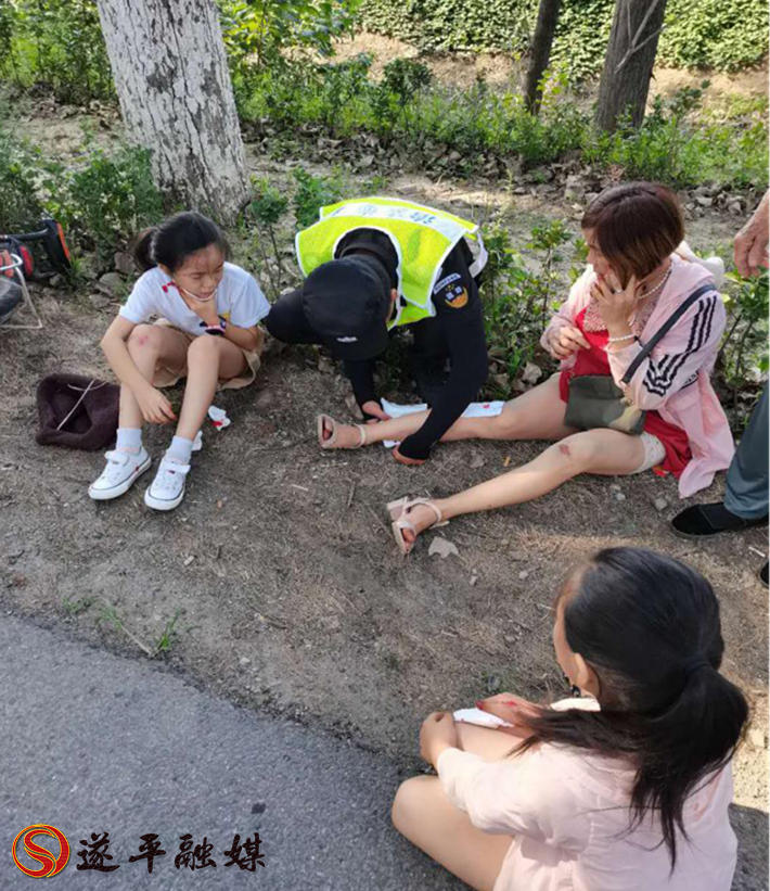 本网讯 8月27日下午4点左右,遂平县治安巡防队常庄中队在希望大道巡逻途中,突然遇到了一场交通事故:一名骑电动车的妇女被一辆白色轿车撞翻在地,电动车上还带着两个孩子,大人和小孩都有不同程度的受伤。