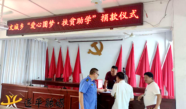 组织全体乡、村干部募捐。9月1日,文城乡人民政府组织了“爱心圆梦,扶贫助学”的捐助活动。在大会上文城乡党委书记李永呼吁全乡各级干部积极踊跃参与爱心助学活动,携手共筑爱心网,为贫困家庭的学子奉献一份爱心、在本次捐助活动中,乡、村两级干部纷纷献出自己的一片爱心。本次募捐活动共筹措善款7700元、后期还将陆续有善款汇入。