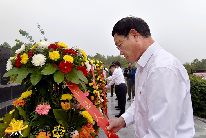 在深情舒缓的《献花曲》中,县四个班子领导以及各界群众代表向烈士纪念碑敬献花篮。花篮安放后,县委书记何冬、县长侯蕴、县委副书记尹永彪、县人大常委会主任梁留平等缓步走到花篮前,庄重整理花篮缎带,表达对烈士的沉痛哀思。