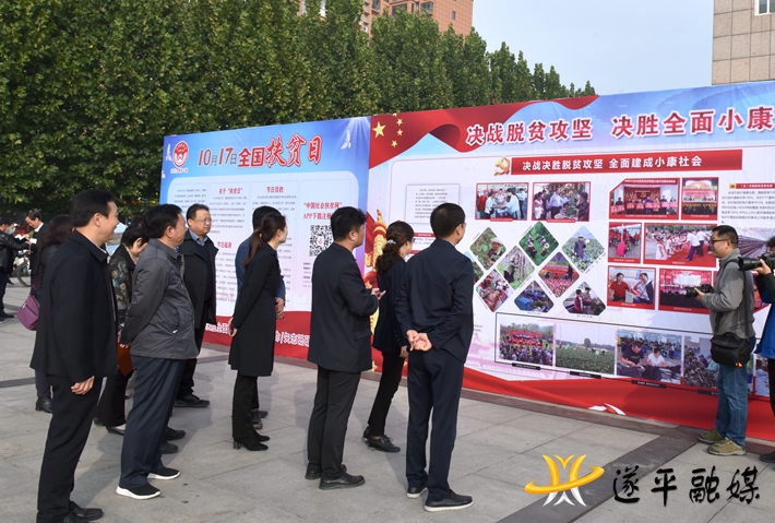 本网讯 (记者:张磊 户伟 威力 亚南) 10月17日是我国第七个扶贫日,也是第28个国际消除贫困日。为全面展示遂平各条战线各个领域精准扶贫工作取得的显著成效和丰硕成果,巩固和扩大脱贫攻坚成效,我县在奥林匹克广场隆重举行遂平县脱贫攻坚图片展活动。县领导何冬,梁留平、张卫东、马莉、郭东泉、王红新、江海松、赵国庆、万传琴、张阳、安应照、曹鹤亭等到现场观看指导。