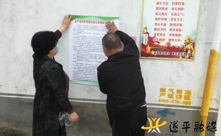 粘贴好三张宣传明白纸。组织专门人员将“遂平县秋冬季新冠肺炎疫情防控明白纸和告广大人民群众的一封信粘贴到辖区内各醒目位置”,切实让广大人民群众充分认识到秋冬季疫情防控工作的重要性、紧迫性,并自觉将行动统一到上级要求上来。