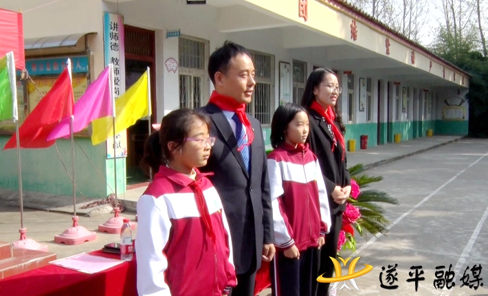捐赠仪式上,高庄小学的少先队员代表向信泰保险公司的嘉宾们致敬并为他们佩戴了鲜艳的红领巾。
