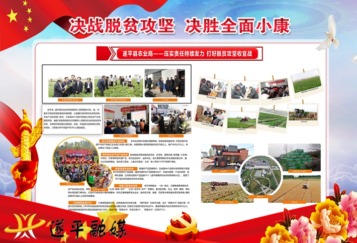 近年来,遂平县农业农村局党组深入贯彻落实中央、省、市、县关于脱贫攻坚的各项决策部署,认真履行驻村帮扶主体责任和农业产业扶贫部门责任,为全县48个贫困村配备52名农业产业发展指导员,选配7名具有高级农艺师职称人员担任农业科技扶贫特派员,为帮扶村的发展出谋划策。目前,共选派26名帮扶队员驻村帮扶,已帮助298户贫困户共785人稳定脱贫。