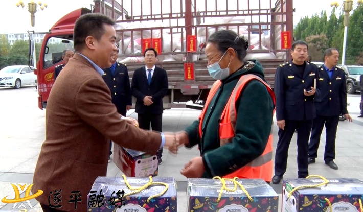 会后,爱心企业为辛勤付出的环卫工人送去了节日慰问品,表达对环卫工人的敬意。