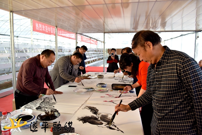 艺术家深入示范园体验生活,农业企业蓬勃向上的张力和开拓创新的精神令艺术家们精神振奋,激起强烈的创作欲望。艺术家们展开宣纸,拎笔泼墨,或写或画,一句句充满着对企业祝福、激励、憧憬的话语跃然纸上,一幅幅意境悠远、形神兼备、惟妙惟肖的画卷展现笔下。书画家在这里写生创作,为合作与交流提供了一个契机,也为文化旅游发展注入了新的活力。
