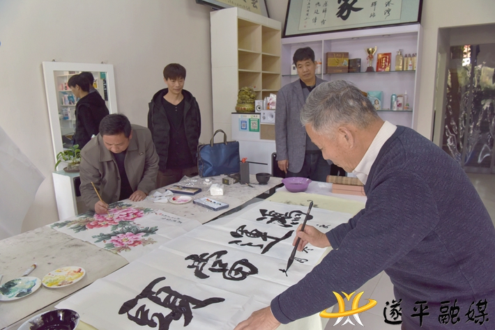 本网讯(记者:王雷 威力)11月19日,遂平嵖岈山书院书画家一行走进遂平“艺丝枫尚”美发店开展书画创作笔会活动。