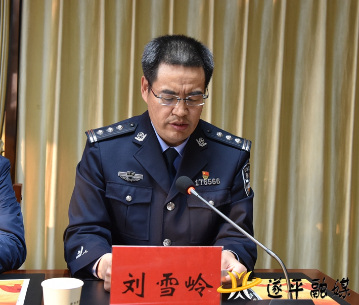 遂平县公安局局长刘雪岭宣布了遂平县见义勇为协会第一届会员大会选举结果。