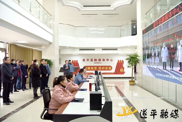 在县融媒体中心,考察团一行观看了宣传短片,了解了“中央厨房”建设情况及演播大厅运行情况,听取了我县融媒体发展进程、平台架构、人员构成、工作流程、系统运行、资源整合及融媒体建设整体推进等情况。