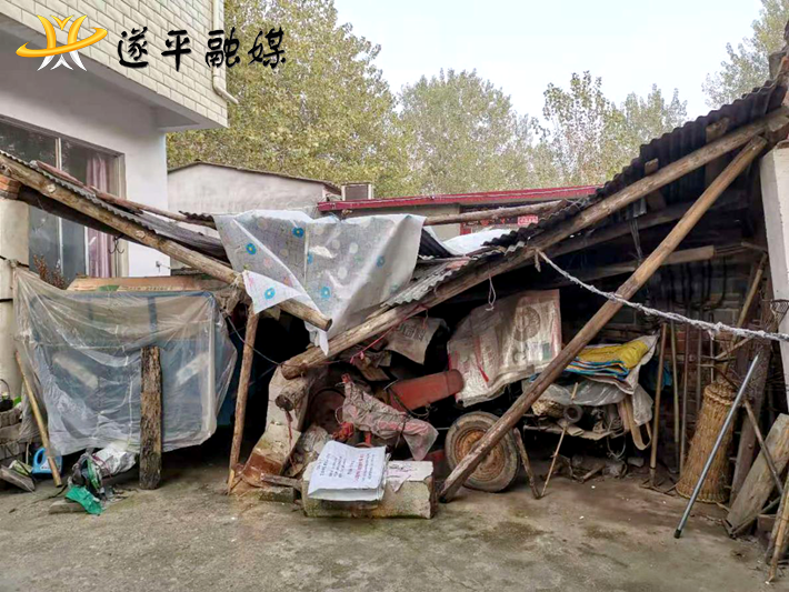 本网讯(通讯员:魏新海) 这不是地震了,也不是大风造成的,这是一次意外事故。前不久,张店村脱贫户张新伟家的东车篷,因张新伟开三轮电动车不小心撞倒了。张新伟86岁的母亲田秀说,当时张新伟开着小三轮往后倒车,就听到“轰隆”一声,小三轮把两间车棚中间近两米高的砖柱子撞到,檩条倾斜,石棉瓦哗啦破碎,这个柱子是纯砖水泥砌成非常坚固,幸亏水泥柱子往里面倒了,如果把我的“傻孩子”砸坏了可叫我怎么办。田秀口中的“傻孩子”,就是她的儿子张新伟,今年50岁,5年前患脑溢血留下后遗症,现在家有5口人,其父亲张进山已89岁,母亲田秀85岁,张新伟的儿子在浙江务工,孙女在外地上学,生活起居重担全部由张新伟的母亲料理,棚子塌了,犹如天塌了。