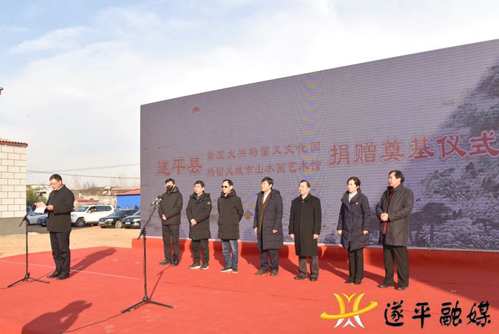 县委书记何冬在仪式上致辞。她说,近年来,遂平县把文化建设放在全局工作的突出位置,推动优秀传统文化创造性转化、创新性发展。不断加大投入、完善机制、强化保障,有力推动了文化事业繁荣发展。杨留义先生捐建遂平县常庄大兴杨留义文化园和遂平县杨留义城市山水画艺术馆,不仅彰显了成名不忘回报家乡、回报父老、回报社会的崇高精神境界,更是为全社会提供了具有影响力的宝贵精神财富,必将进一步推动遂平文化产业发展和乡村文化振兴。下一步,我们将把两个项目作为“十四五”开端的重点文化项目强力推进。全县相关职能部门和乡镇要切实增强大局意识、责任意识、服务意识,全力支持推动项目建设、服务项目发展,确保项目优质高效完成,为加快遂平文化事业高质量发展作出新的更大贡献。