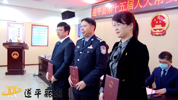 县人大常委会主任梁留平为冯颖颖、冯全敬、茹纯洁三位同志颁发了任命证书。