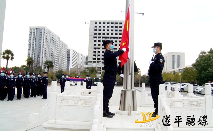 仪式现场,警歌嘹亮,参加仪式的全体民警着装规范,警容严整,精神饱满。上午8时,冯全敬宣布升旗仪式仪式开始。