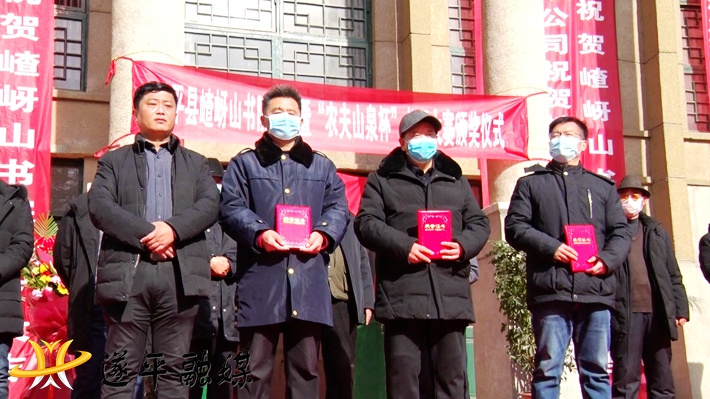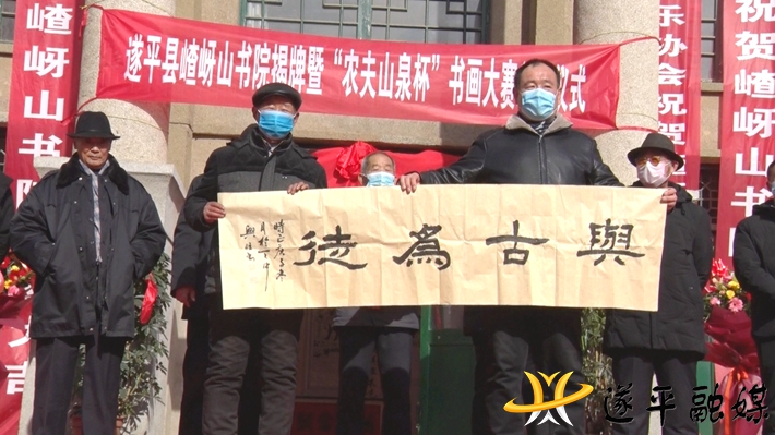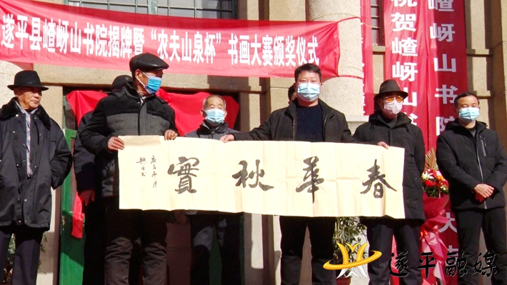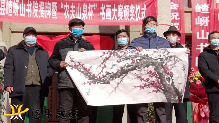 本网讯(记者:袁志豪)丹青寄深情,翰墨写春秋。1月9日,遂平县嵖岈山书院揭牌成立暨“农夫山泉杯”抗疫书画大赛颁奖典礼在嵖岈山镇卫星人民公社隆重举行。原遂平县副县长董国振,遂平县宣传部副部长、融媒中心主任梁军锋为嵖岈山书院揭牌。原嵖岈山镇党委书记、县长助理申国庆,原遂平县公安局副局长郑继寅,驻马店市作协副主席王中明,县社科联主席遂平书法协会主席王红宇,县美术家协会主席刘春梅及嵖岈山书院书画家们等一同出席揭牌仪式。