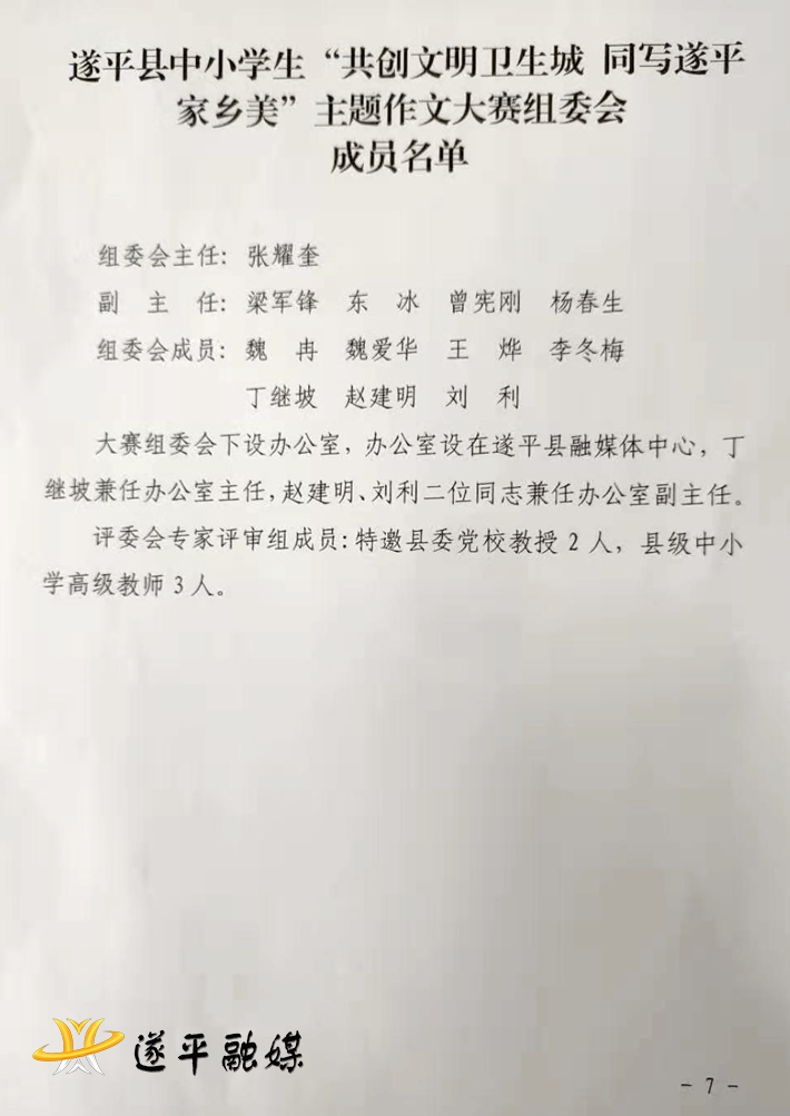 附:遂平县中小学生“共创文明卫生城 同写遂平家乡美”主题作文大赛组委会成员名单