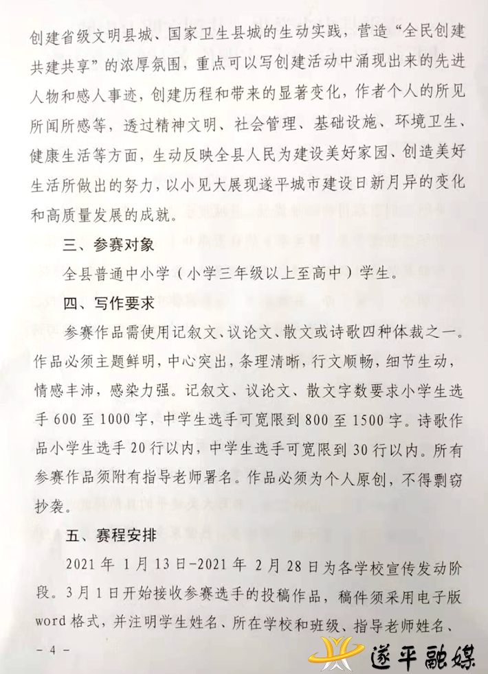 同写遂平家乡美”主题作文大赛实施方案