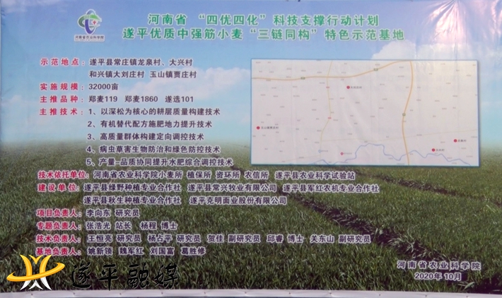 河南省“四优四化”项目由省农科院负责实施,其主有内容是对我省小麦、花生、草畜、林果四种优势作物的优良品种,推进布局区域化、经营规模化、生产标准化、发展产业化。自2017年开始, “四优四化”优质小麦专项已连续4年在我县实施。几年来,通过推广适宜我县的优质小麦品种与绿色增效生产技术集成示范应用,大幅提高了优质小麦产量。同时,专业合作社与粮食加工企业进行有效对接,示范基地所生产的优质小麦全部由遂平克明面业实行订单加价收购, 该项目的实施,不仅增加了农民收入,也在一定程度上缓解了我县粮食加工企业对优质小麦的需求缺口,促进了我县粮食加工企业的发展,并起到了以点带面,辐射周边的效果,为我县及周边地区未来优质小麦产业发展起到了很好的引领带动作用。