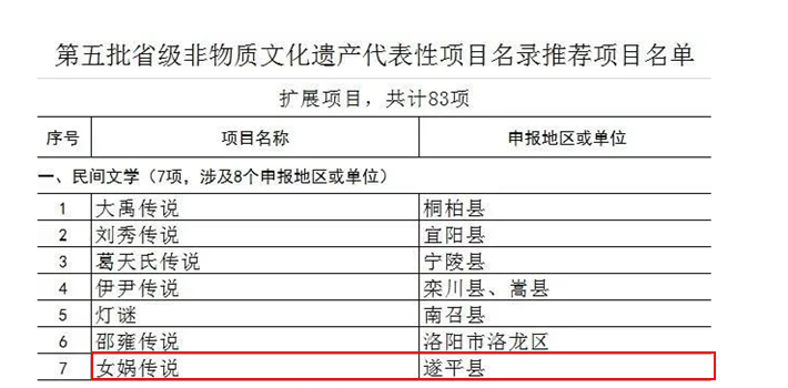 我市这些项目入选:第五批省级非遗代表性项目(扩展项目)包括:女娲传说(遂平,民间文学)、天中火笔画(汝南,传统美术)、刘氏老土布纺织技艺(上蔡、传统技艺)、胡琴制作技艺(上蔡,传统技艺)、位公半辣蹄(平舆,传统制作技艺)、蔡州酒酿造技艺(新蔡,传统制作技艺)、顿岗油馍制作技艺(新蔡,传统技艺)、老张家膏药制作技艺(上蔡,传统医药)。