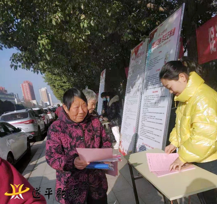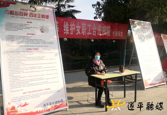 本网讯 3月3日,按照县政府、县妇联统一安排,遂平县住建局在县政府门口组织开展三八妇女节维权宣传活动。