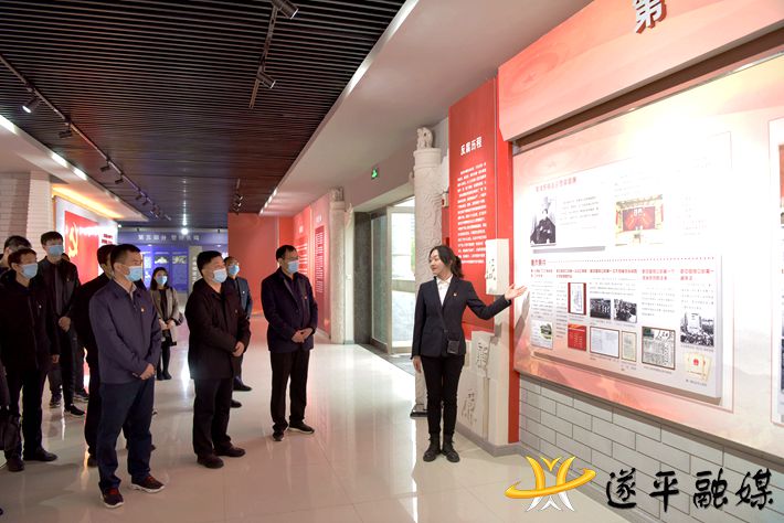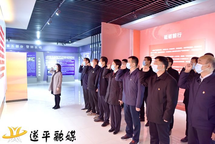参观结束后, 全体党员干部排着整齐的列队,面向党旗高举右拳,重温入党誓词,并激昂的宣誓,作出了对党忠诚、积极工作的庄严承诺。