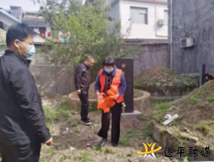 3月30日上午,陶城社区党支部书记魏二伟、莲花湖街道办处精神文明实践中心主任王浩等带领的祭扫小分队手捧鲜花、自带清扫工具,早早来到位于遂平老一高北门东边和南门东边的烈士墓前,进行清扫、祭拜和送鲜花活动。这两个地方共安葬有李英杰、孙雨、魏东、沈中明、师训德、王学义、关宏家等十多位烈士,他们都是在遂平“七五.八”特大洪水抢险救灾中为保护人民群众生命财产安全而英勇献身牺牲的英烈,虽然时光过去近半个世纪,但后人们一直牢记并并传颂着他们的英勇事迹。经过祭扫小分队一个多小时的精心认真清扫,沉睡安息多年的烈士墓前环境面貌很快焕然一新。