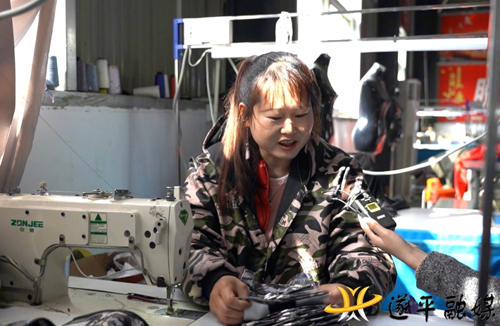 于楼社区居民许雪燕,因孩子上学不能外出打工,现在村子里就有工厂,她不出家门就找到了工作,现在挣钱顾家两不误,许雪燕别提多高兴了。