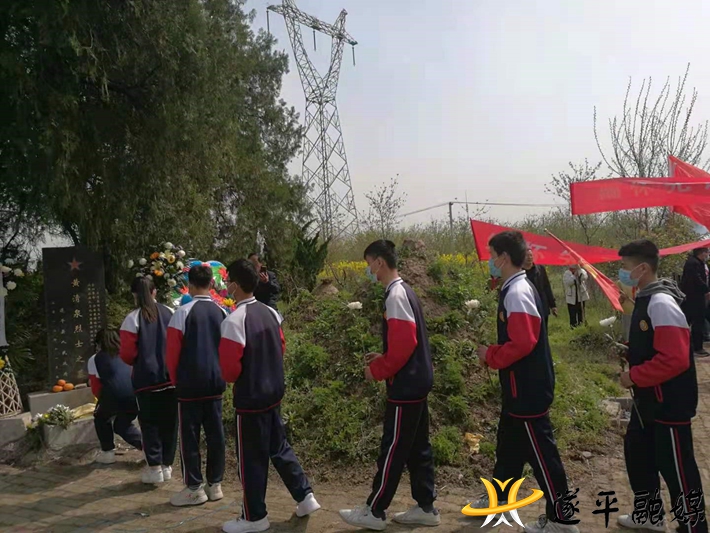 9点50分车队到达烈士陵墓。师生们迈着整齐的步伐,来到了烈士墓前,主持人带领大家重温了黄清泉烈士的英雄事迹,接着全体人员在哀乐声中向英勇的烈士默哀一分钟。学生代表在烈士墓前庄严宣誓:“我们是共产主义事业接班人,我们一定会继承烈士遗志,永远跟党走,永远听党的话,自尊自强,努力学习,为祖国的繁荣昌盛而奋斗!” 最后,在礼炮声中各界人士及师生们列队逐一向英烈敬献鲜花,以表对革命前辈的悼念与缅怀。