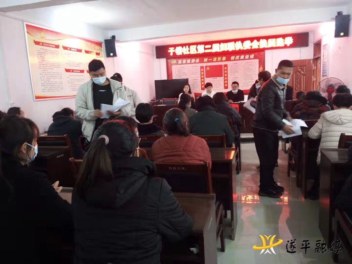 本网讯 (通讯员:史欣欣)4月2日上午,遂平县褚堂街道于楼社区召开第二次妇女代表大会,市妇联副主席张宏、市妇联派驻于楼社区驻村工作队、于楼社区支部书记李东及近50名妇女代表参加会议。褚堂街道副书记徐科技主持会议。