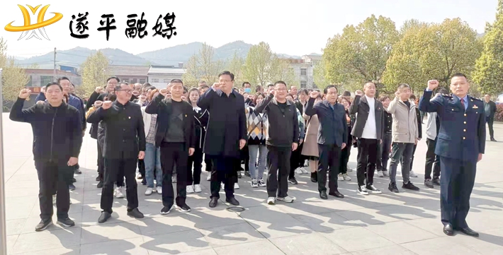 在烈士纪念碑前,全体党员干部整齐列队、集体默哀、鞠躬致敬,向烈士纪念碑敬献花篮,表达对他们的无限哀思和崇高敬意。