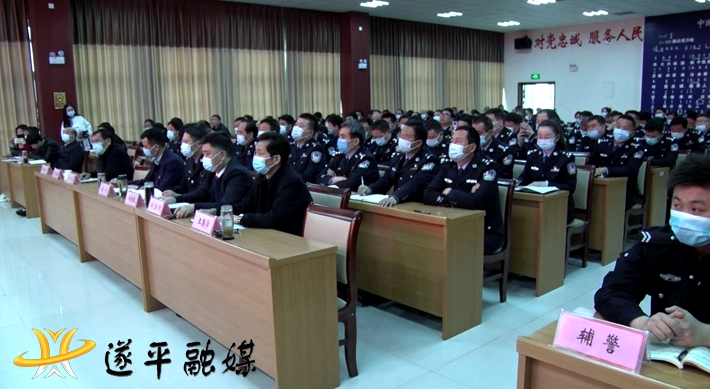 本网讯(记者: 张若愚)近日,“党旗颂·忠诚颂”河南政法英模先进事迹巡回报告团遂平专场报告会在县公安局举行。县委常委、县政法委书记戚斌,县政府副县长、县公安局局长冯全敬,县人民法院院长刘金洲出席报告会。