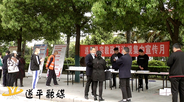 4月28日,我县开展宗教政策法规集中宣传活动,县委常委、县委统战部部长李峰、县政协副主席万传琴到宣传活动现场观看指导。