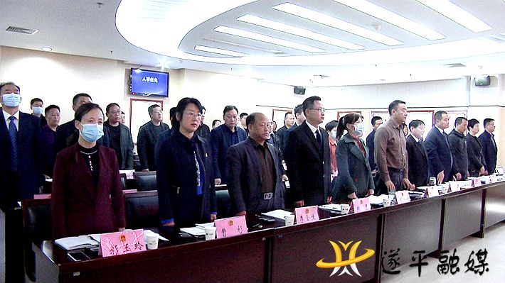 县人大常委会主任梁留平为新任命的同志颁发任命证书,全体起立,奏国歌,新任命的同志进行宪法宣誓。