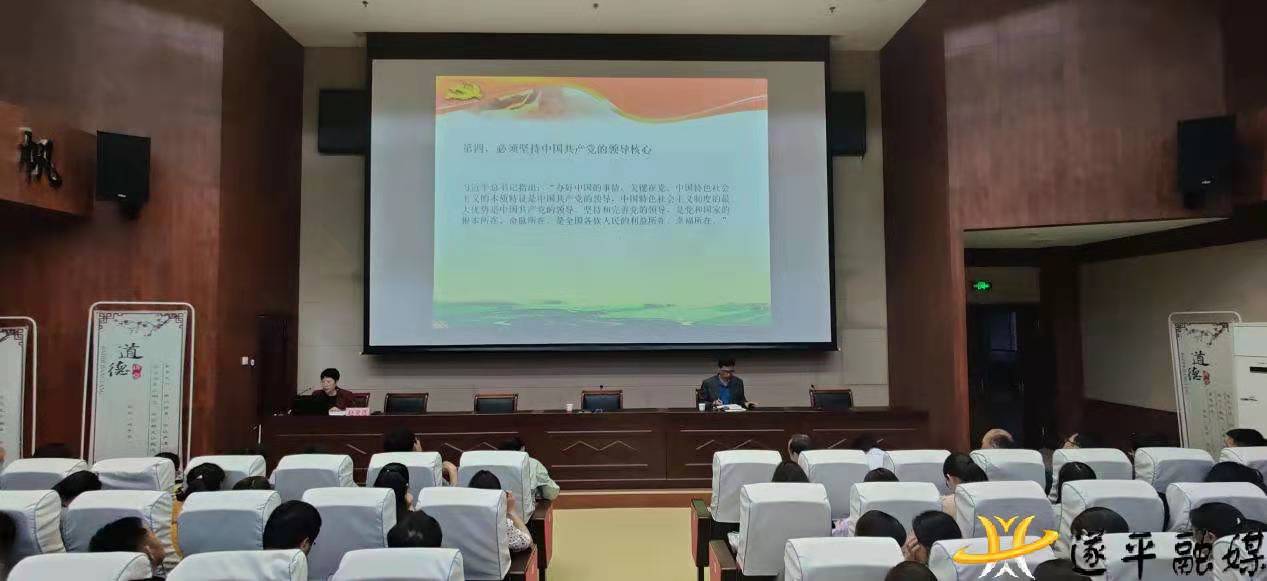 为深入开展党史学习教育,引导全校学党史、悟思想、办实事、开新局,以优异成绩庆祝建党100周年,5月7日晚上,遂平一高举行党史学习教育专题宣讲报告会,邀请县委党校高级讲师赵爱莲作了题为“中国共产党的奋斗历程与基本经验”宣讲报告,全校400余名党员干部职工参加了报告会。报告会由学校副校长马庆甫主持。